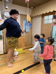どのクラスの子どもたちも、節分の雰囲気を味わいながら、楽しく遊びに参加していました。